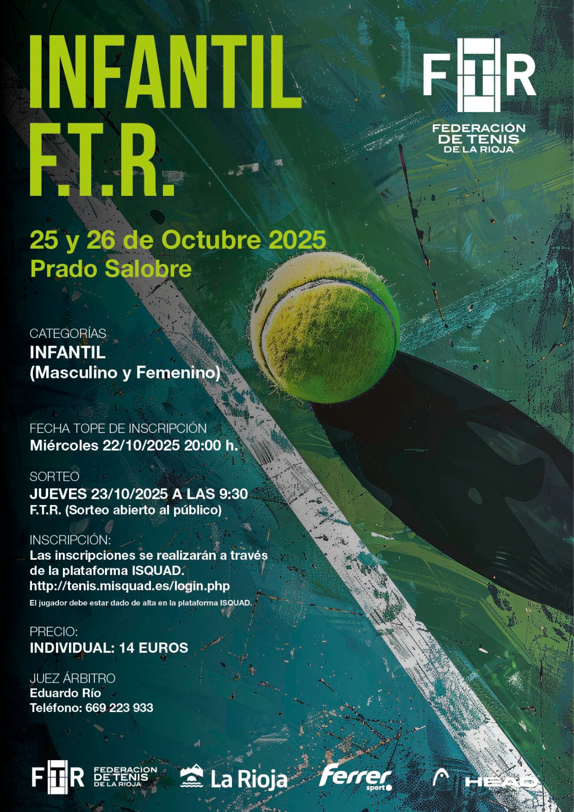 2025 Noticias Tenis en silla TorneosIII Torneo de Promoción de Tenis en Silla de Ruedas de La Rioja 13 de octubre de 2025 El madrileño Sam Gómez se alzó con la victoria en el III Torneo de Promoción de Tenis en Silla de Ruedas de La Rioja, disputado… 2025 TorneosTORNEO F.T.R. INFANTIL 13 de octubre de 2025 BASES 2025 Jugadores riojanosISABELLA RIVERO “AS YOUNG TOUR VALLADOLID” 13 de octubre de 2025 La jugadora riojana Isabella participo la semana pasada en el circuito Nacional “IBP AS Young Tour Castilla y León” en la categoría Sub 16. La…